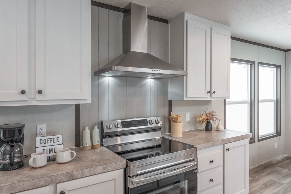 The MiYO / The Empower 35MYO32684AH built by Clayton Bonham showcases an impressive 2040-square-foot layout with 5 bedrooms and 3 bathrooms. The spacious design features an open concept living area perfect for gatherings, flowing seamlessly into a well-equipped kitchen with generous cabinetry and counter space.